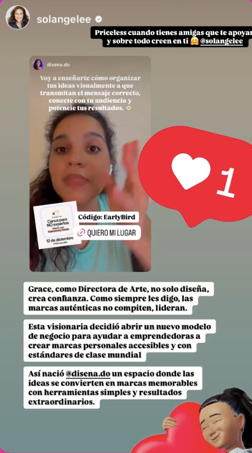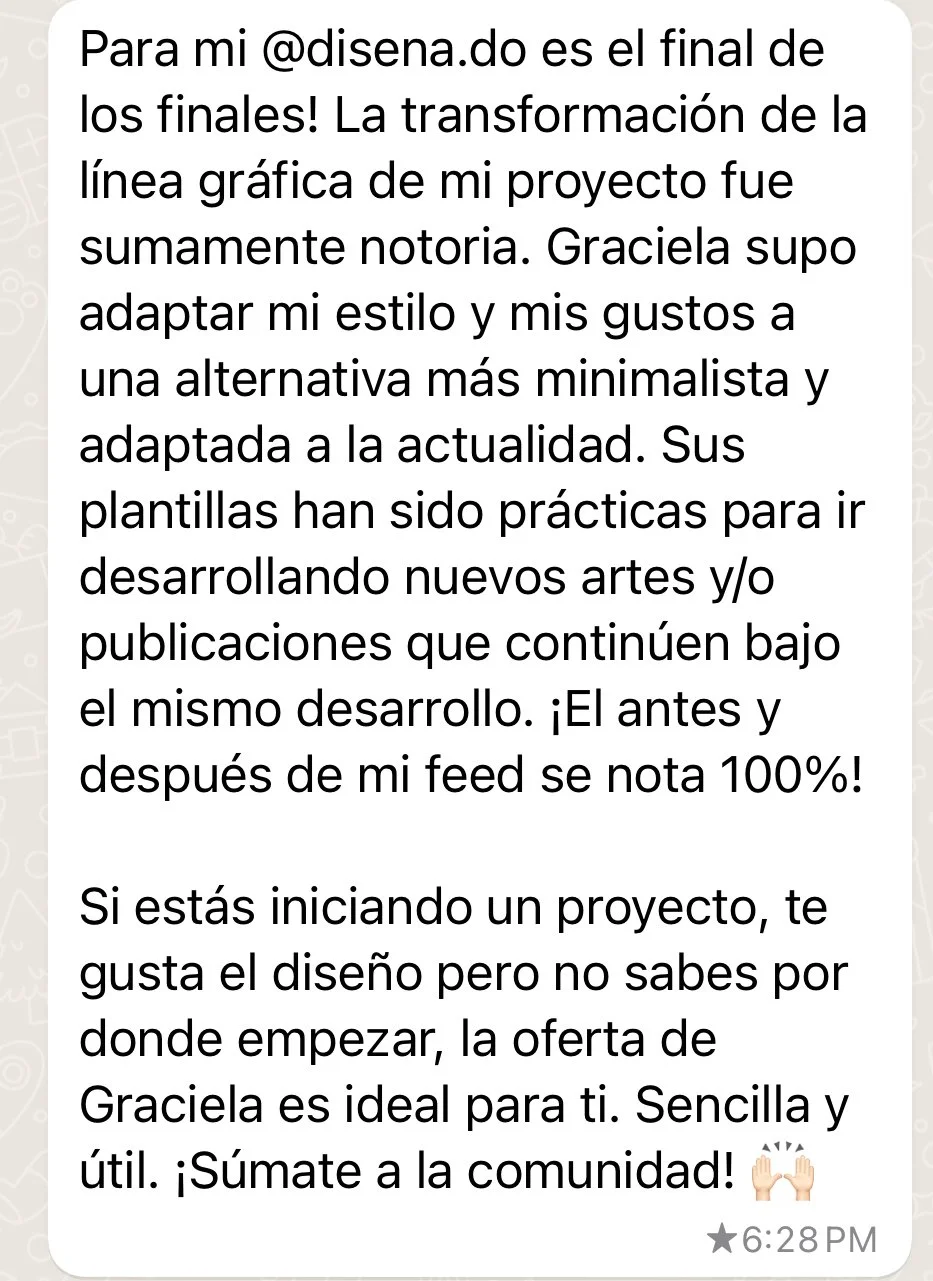 ✔ Romperás con el miedo al diseño: Aprenderás que no necesitas ser diseñadora para crear contenido visual estratégico y profesional. Tendrás seguridad y propósito con tu diseño y entenderás cómo comunicar el mensaje que quieres transmitir y no solo decorar.